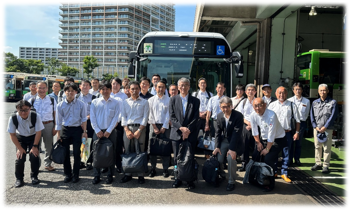 専門委員会の事業活動の一環として、東京都交通局自動車部車両課様のご協力により、令和7年6月20日(金)、同課自動車工場様において「環境にやさしいバスの車両管理方法および集中車検整備等」をテーマに、勉強会・見学会を実施し、自動車工場及び日本初のバス営業所内水素ステーションの見学をさせていただきました。